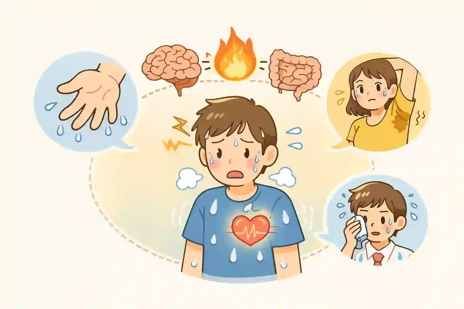 - 手汗・脇汗・顔汗は「場所が違うだけ」で、仕組みは似ていること