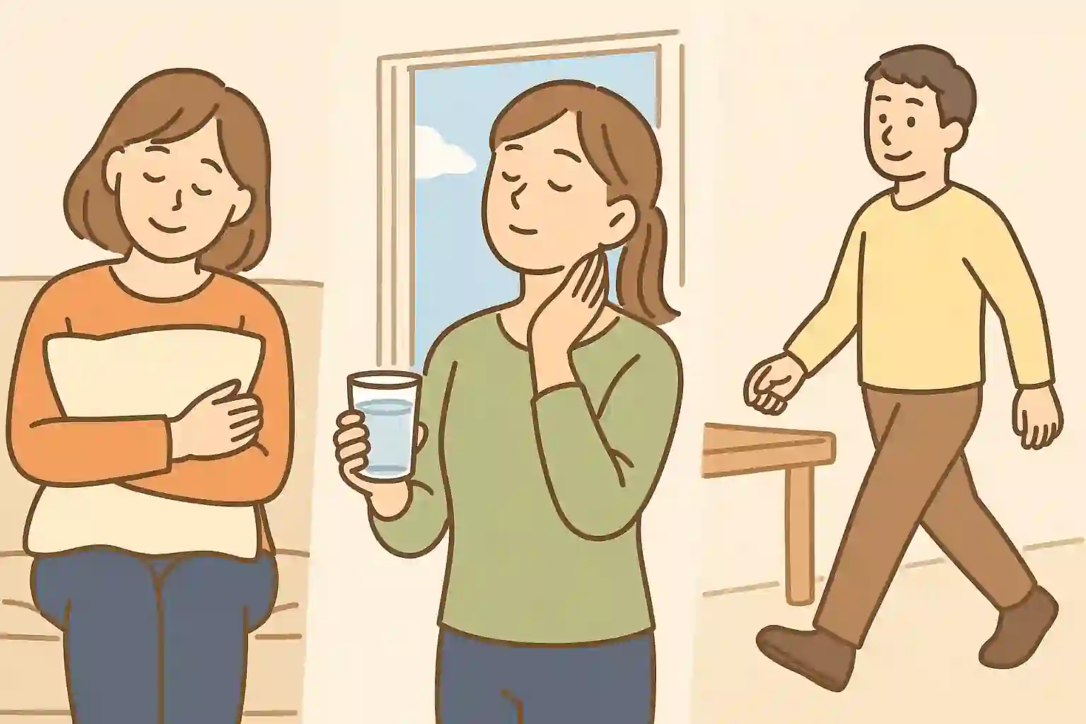 深呼吸や、水を飲むなどの“小さなケア”だけで十分です。